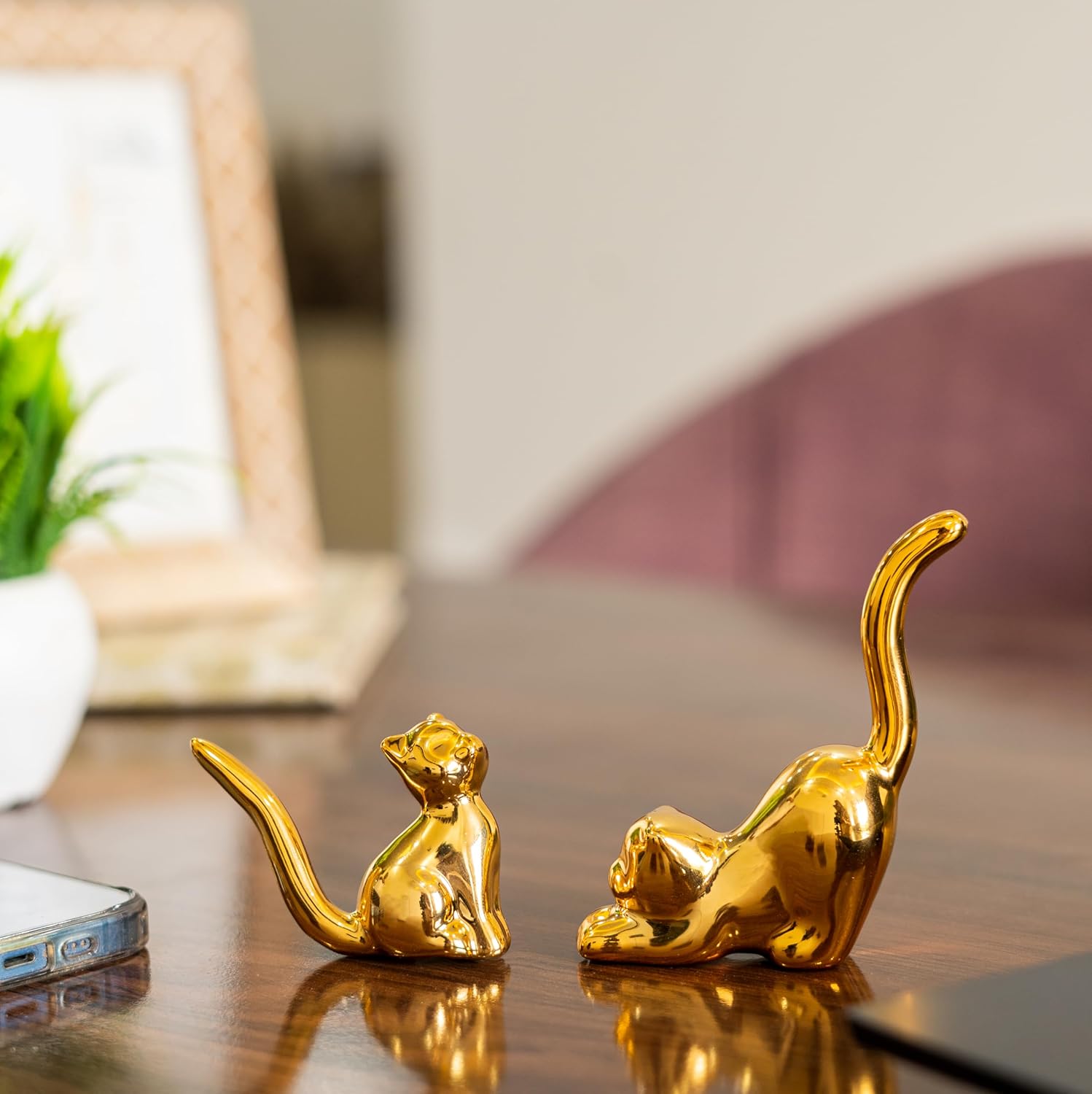 Street27® Cat Statues for Home Decor (2 Pcs) - Golden