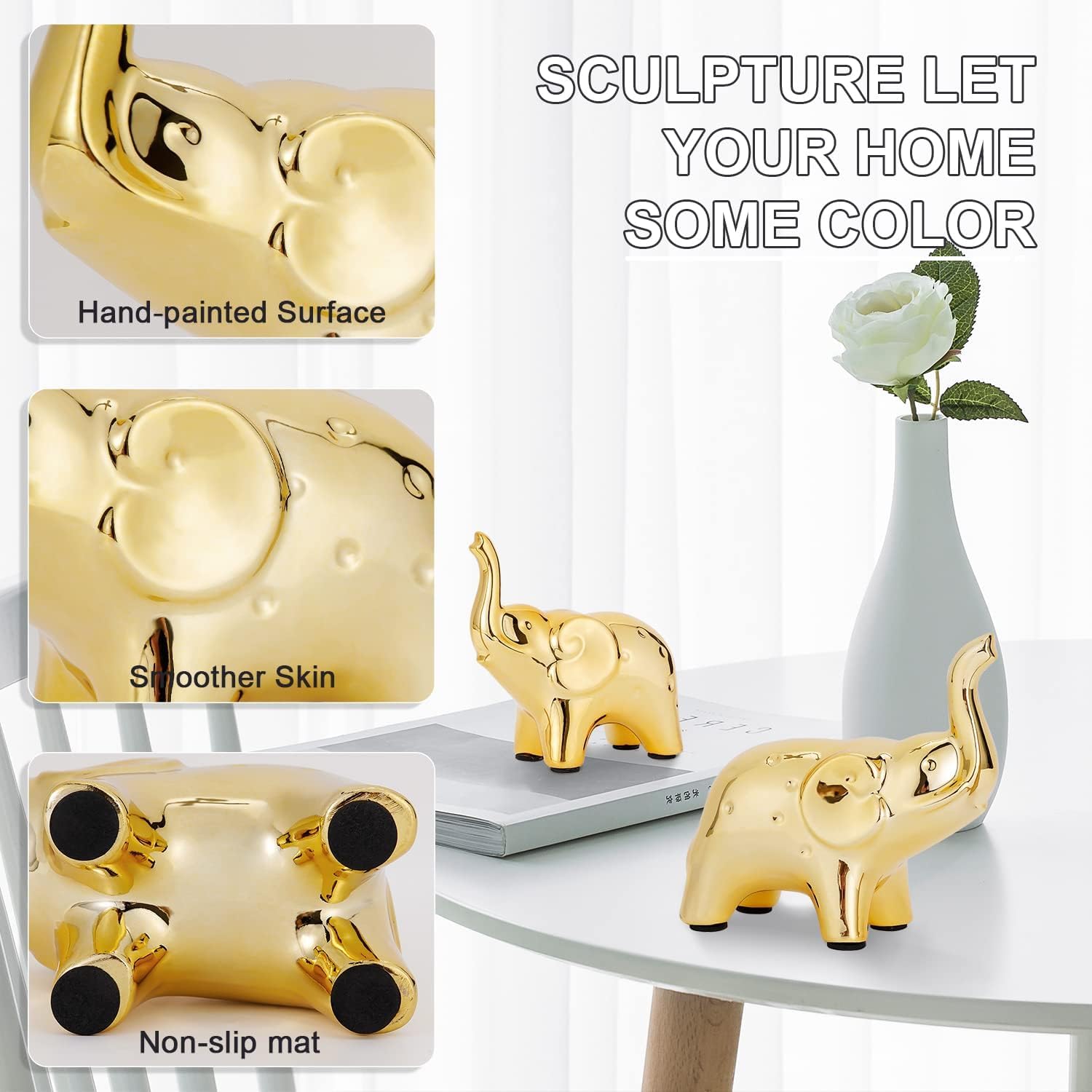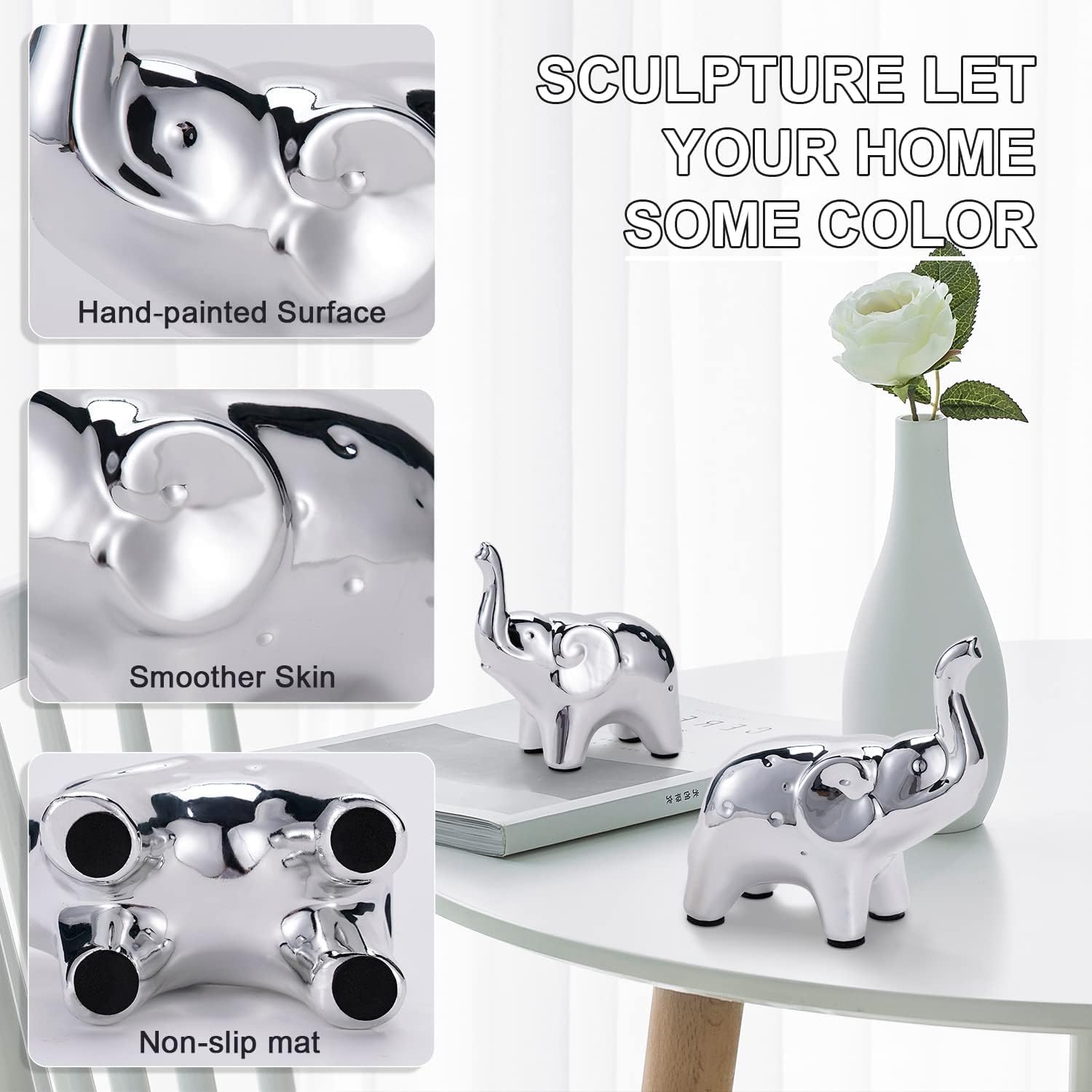 • Elegant Home Decor: A beautiful pair of ceramic elephant statues, adding sophistication and charm to any home, office, or living room.